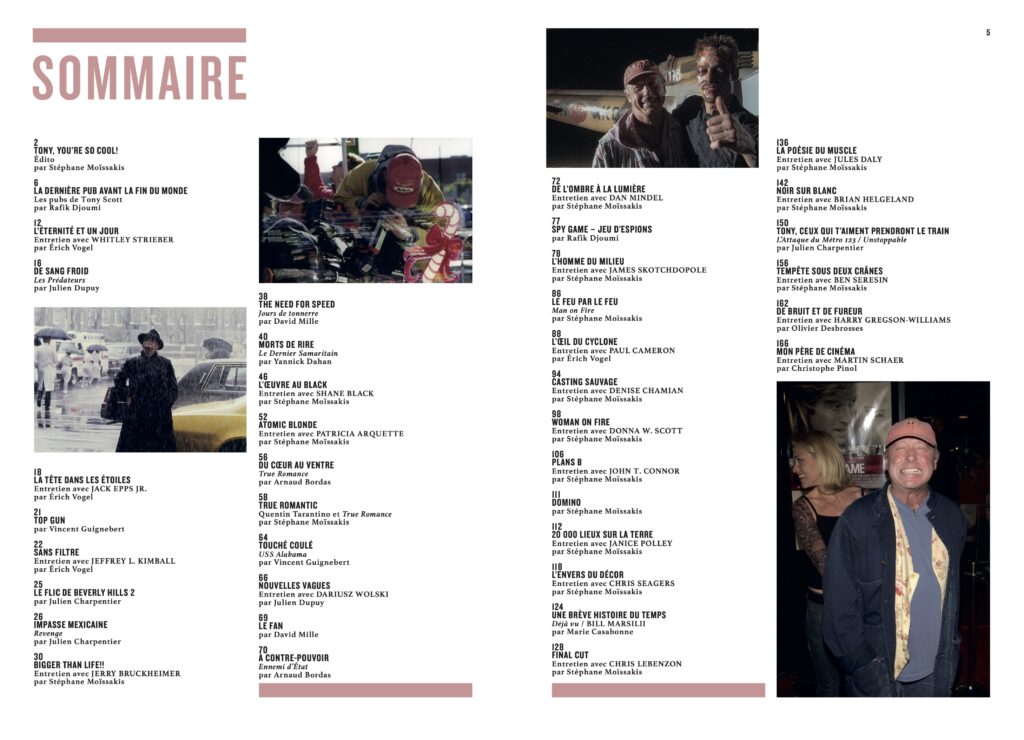 Au total, vous retrouverez donc plus d’une vingtaine d’interviews totalement exclusives (qui vont de quatre à huit pages pour certaines) qui – mises bout-à-bout – brossent un portrait global et très complet de la carrière de Tony Scott. Et c’est sans compter sur la touche intimiste apportée par Donna Scott, la femme de Tony, qui dévoile un peu plus l’homme derrière le cinéaste.